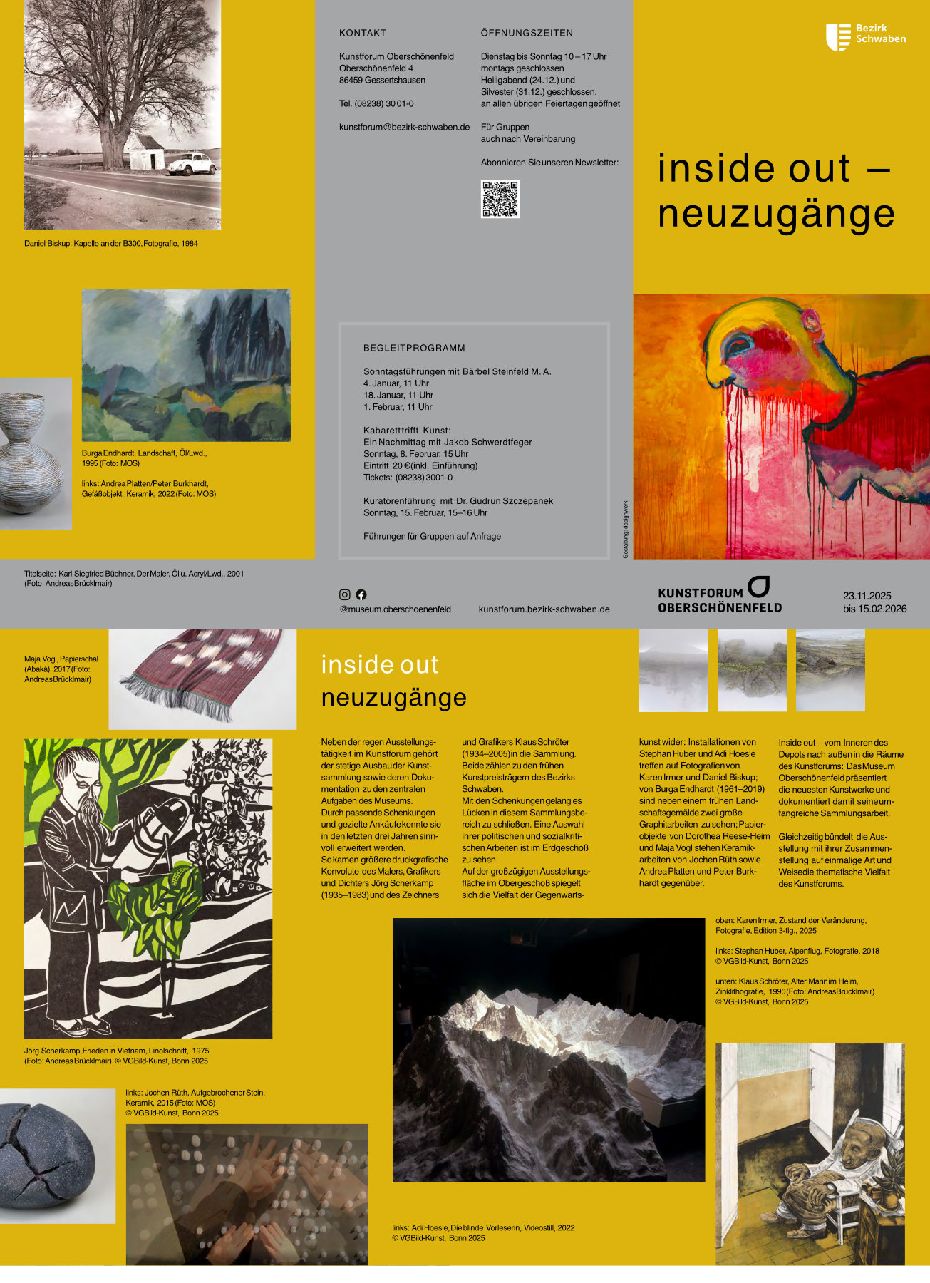 Inside out – vom Inneren des Depots nach außen in die Räume des Kunstforums: Das Museum Oberschönenfeld präsentiert die neuesten Kunstwerke der Sammlung. Zugleich zeigt die Ausstellung die thematische Vielfalt des Kunstforums.
