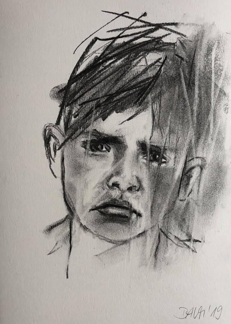 Seit früher Jugend malt und zeichnet sie Menschen in Bewegung und Porträts