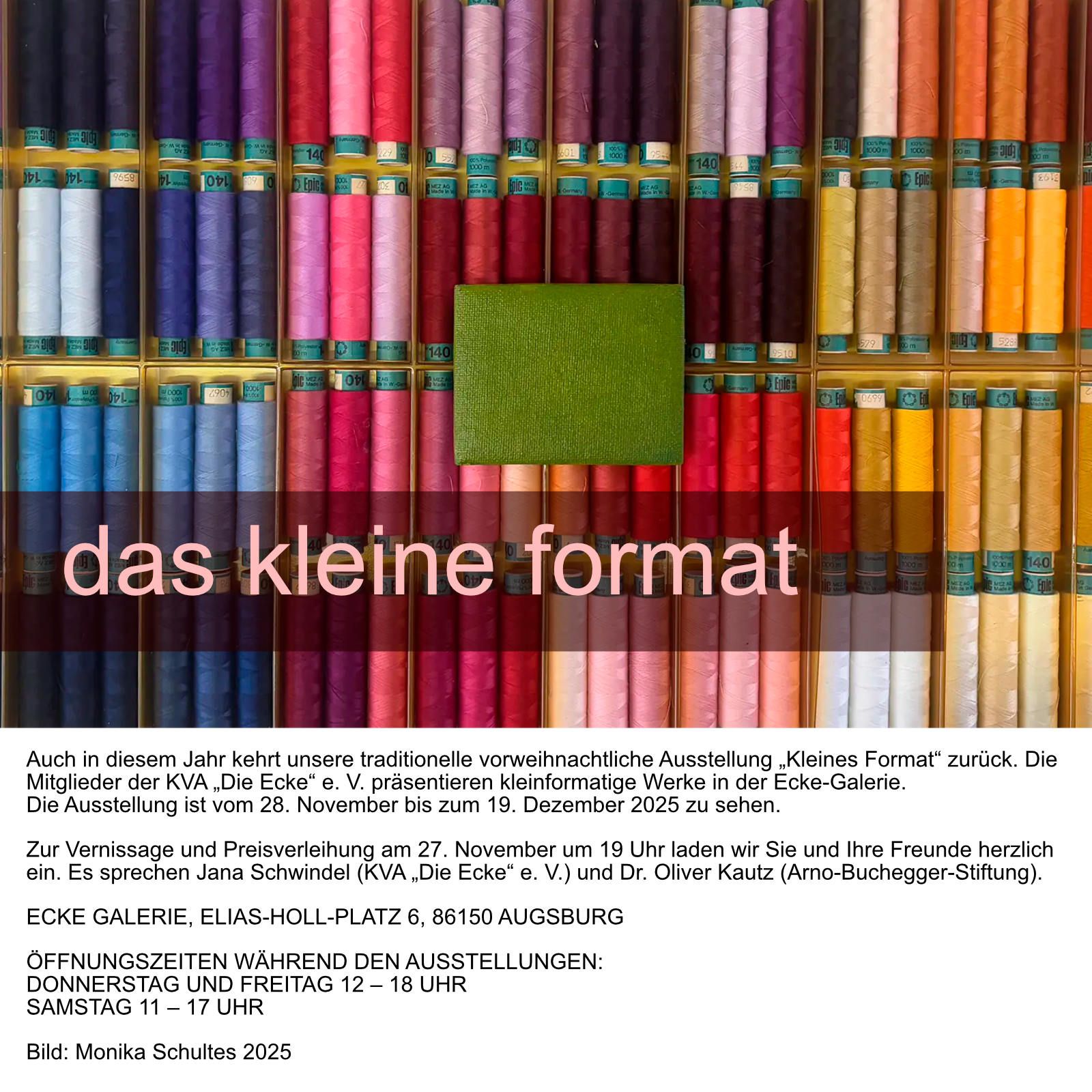 Auch in diesem Jahr kehrt unsere traditionelle vorweihnachtliche Ausstellung „Kleines Format“ zurück. Die Mitglieder der KVA „Die Ecke“ e. V. präsentieren kleinformatige Werke in der Ecke-Galerie.