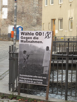Plakate fordern zur Veränderung auf. Mit der Wahl von OD aber nicht durch eine politische Partei, sondern zu einem entscheidenden Gang auf einem Gebiet erster Utopie von “Hegniberg” – dem früh und eng umgrenzten Feld, das doch den eurasischen Kontinent umfasst. Eine jede der Performanzen hat ihre Zeit innerhalb dieser ersten fünf Jahre seit Beginn ihrer Zeitrechnung. Zu wählen hat der so angesprochene Dramaturg einer Wiederaufführung, eines "reenactments", die entsprechenden Textfragmente jener Zeit. Mit ihnen verbunden und auf den Plakaten beispielhaft abgedruckt ist das Bildmaterial einer ersten Aufführung; es ist für die Performanz zwar nicht wesentlich, aber als Hintergrundwissen hilfreich bis unumgänglich.