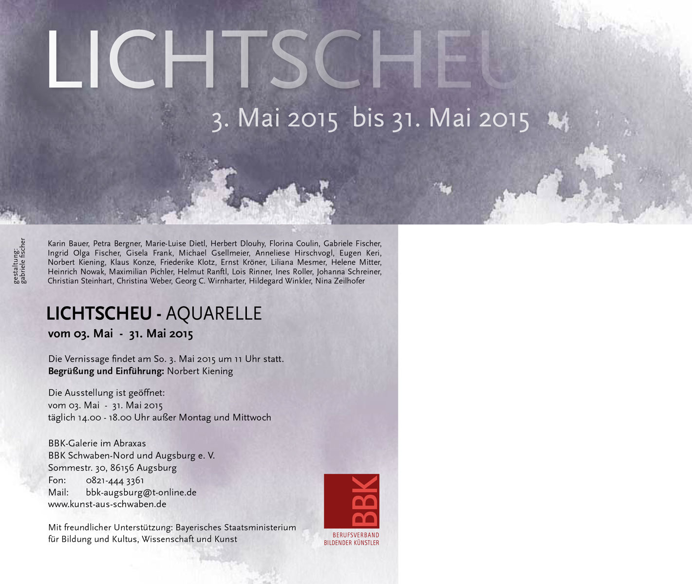 Lichtscheues Gesindel hat keinen guten Ruf. Was jedoch der Berufsverband Bildender Künstler (BBK) Schwaben-Nord und Augsburg unter dem Ausstellungstitel „lichtscheu“ in seiner Galerie im Abraxas im Mai zeigt, kann sich sehen lassen. Es ist eine Hommage an das Aquarell und die erstaunlichen Möglichkeiten, die diese wässrige Malerei eröffnet. Auf saugfähiges Papier sowieso, aber auch auf Leinwand und hinter Glas lassen sich Aquarellbilder zaubern.