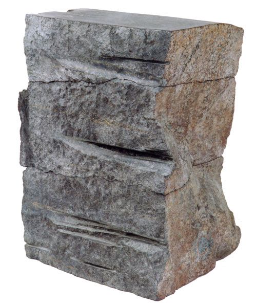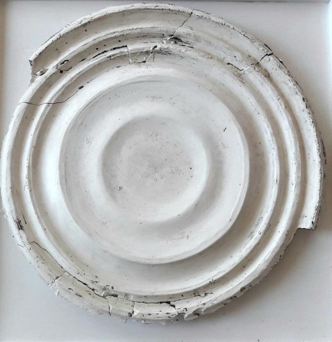 Das Relief aus historisch wirkendem Material erinnert an architektonische Elemente, entzieht sich aber der formalen Deutbarkeit.